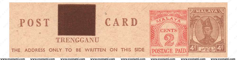 Malaya : Terengganu - Postcard 4¢ + Uprated by 2¢ (1952)