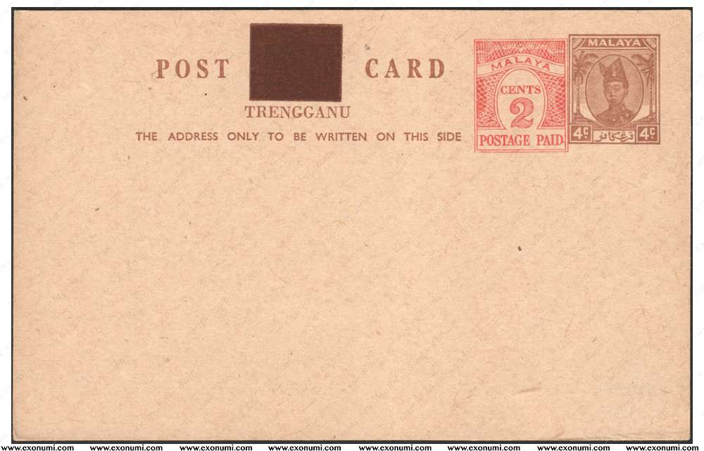 Malaya : Terengganu - Postcard 4¢ + Uprated by 2¢ (1952)