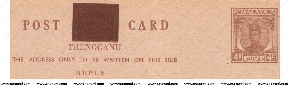 Malaya : Terengganu - Postcard 4¢ + Separated & Only REPLY Portion (1949)