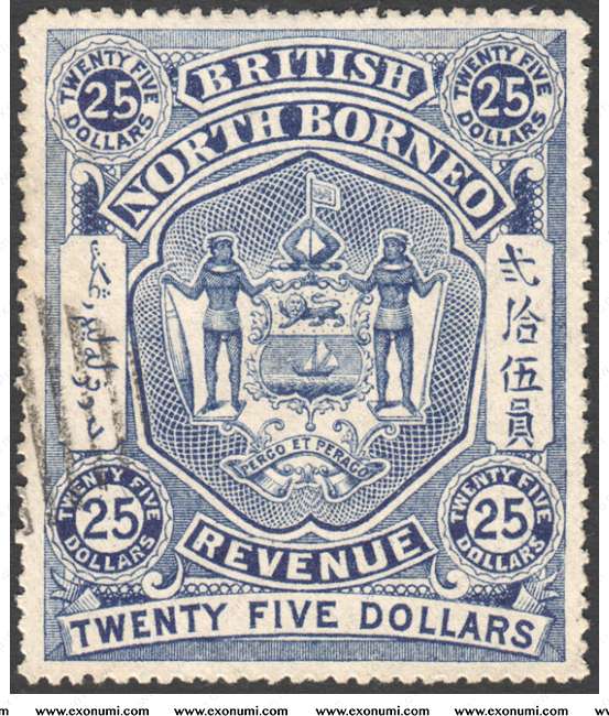 British North Borneo : Revenue Stamp $25 (1889) CTO