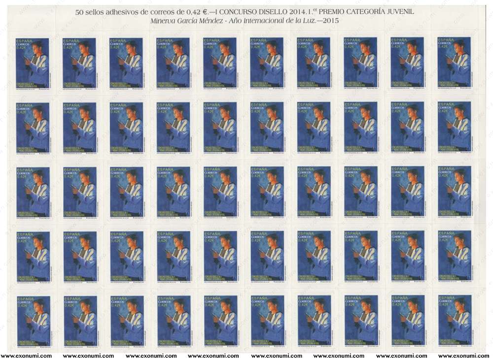 Spain : Disello 'Year of Light' / 'Año de la Luz' (2015) Full-sheet of 50 Stamps