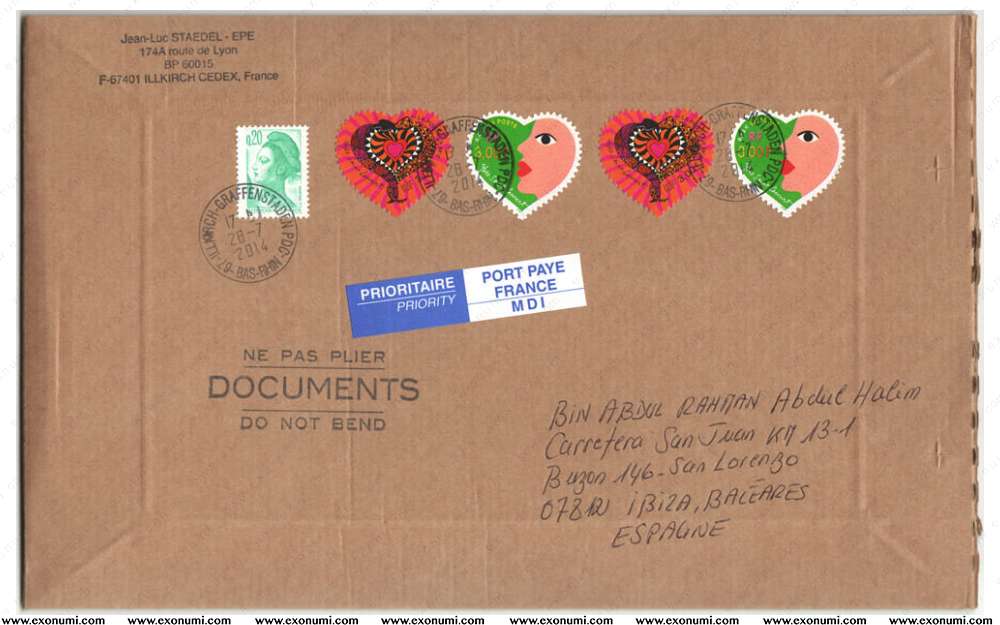 Spain : Postal Cover from France (2014)