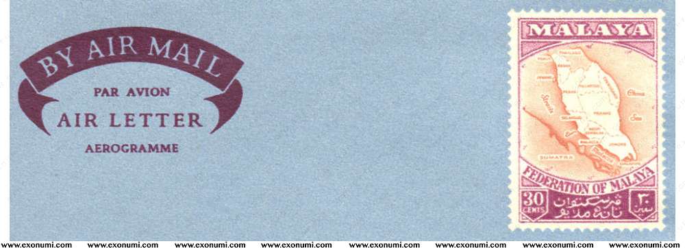 Federation of Malaya - Map of Federation of Malaya - Type I 'AIR LETTER' (1957)