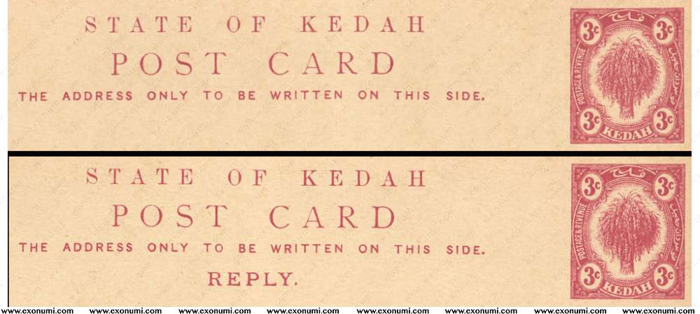 Sultanate of Kedah - Postcard : Sheaf of Reply 3¢ + 3¢ Reply (1912)