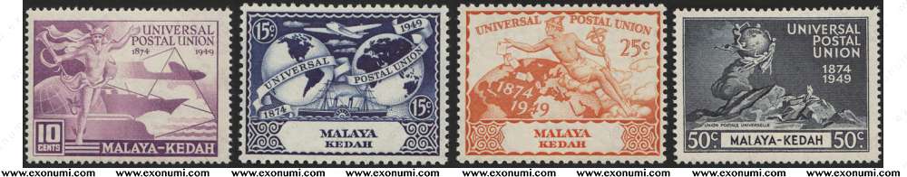 Kedah : 75th Anniversary of Universal Postal Union (UPU) 1949 - Complete MNH