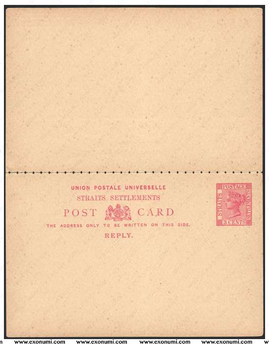 Straits Settlements - 3¢ + 3¢ Postcard (1893) Rate Increase