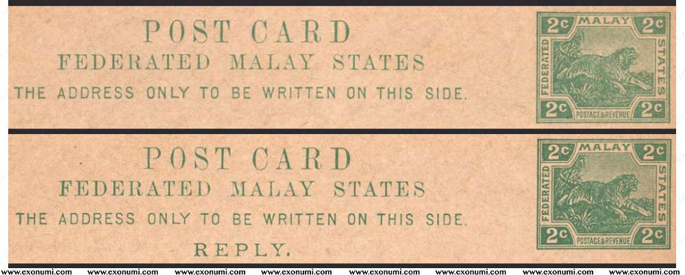 Federated Malay States - Postcard 2¢ + 2¢ Reply (1918)