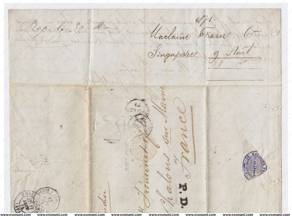 Singapore - Business Correspondence to France (1871) Letter-cum-Cover