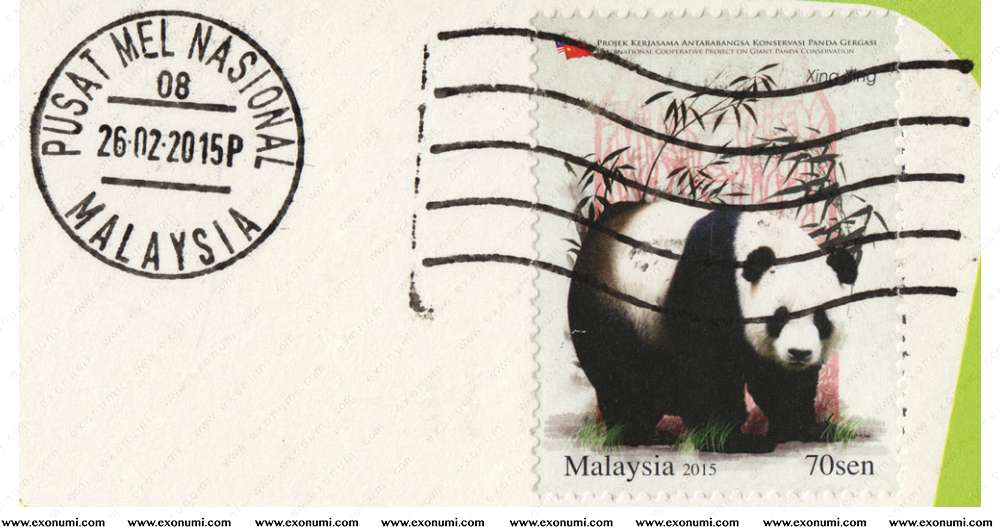 Spain - Postcard from Malaysia with Panda Stamp (2015)