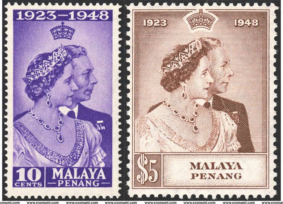 Penang - King George VI & Queen Elizabeth's Wedding Silver Jubilee 1923-1948 (Set) MNH