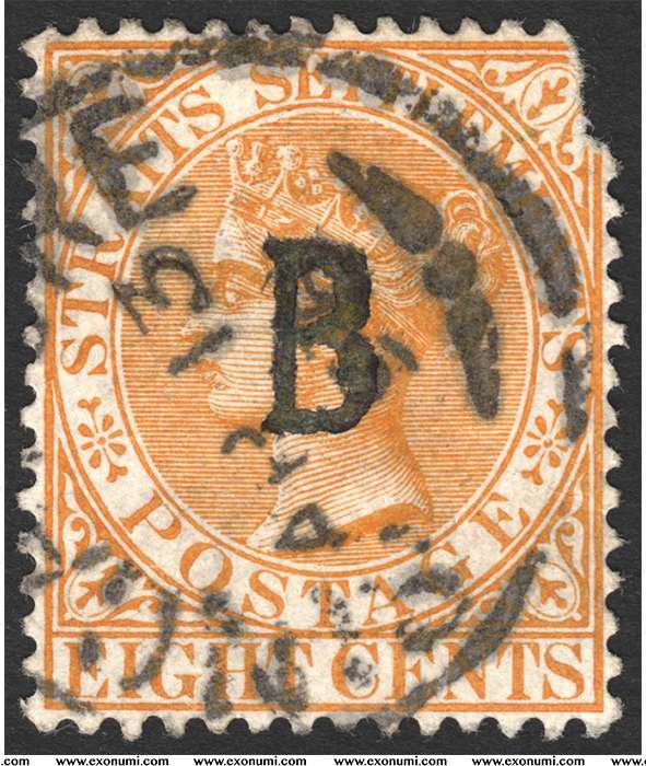 Bangkok British Post Office - Overprinted 'B' on Straits Settlements 8¢ (1882-1885)