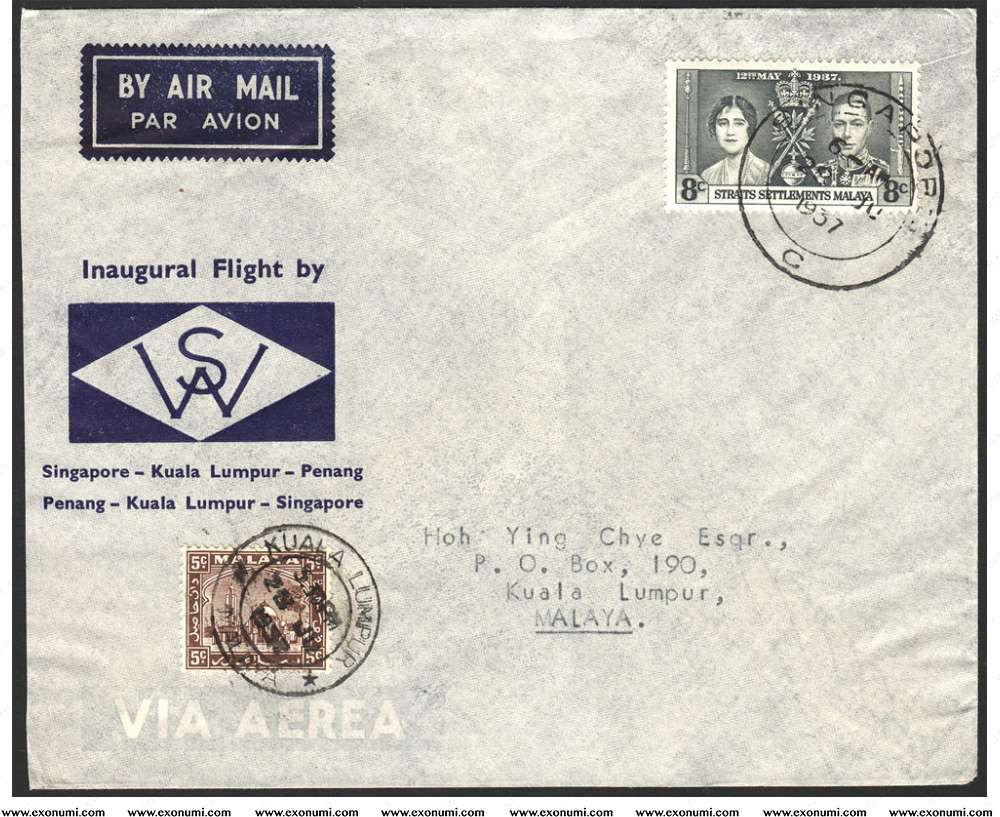 Malaya - Inaugural Air Services 1937 (FDC) Wearne's Air Services - Singapore to Kuala Lumpur