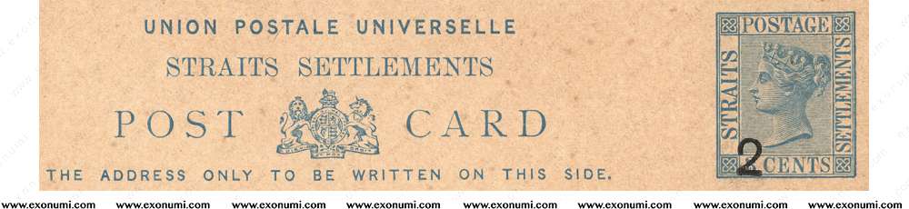 Straits Settlements - Queen Victoria : Postcard 2¢ Surcharged on 3¢ in Black (1891)