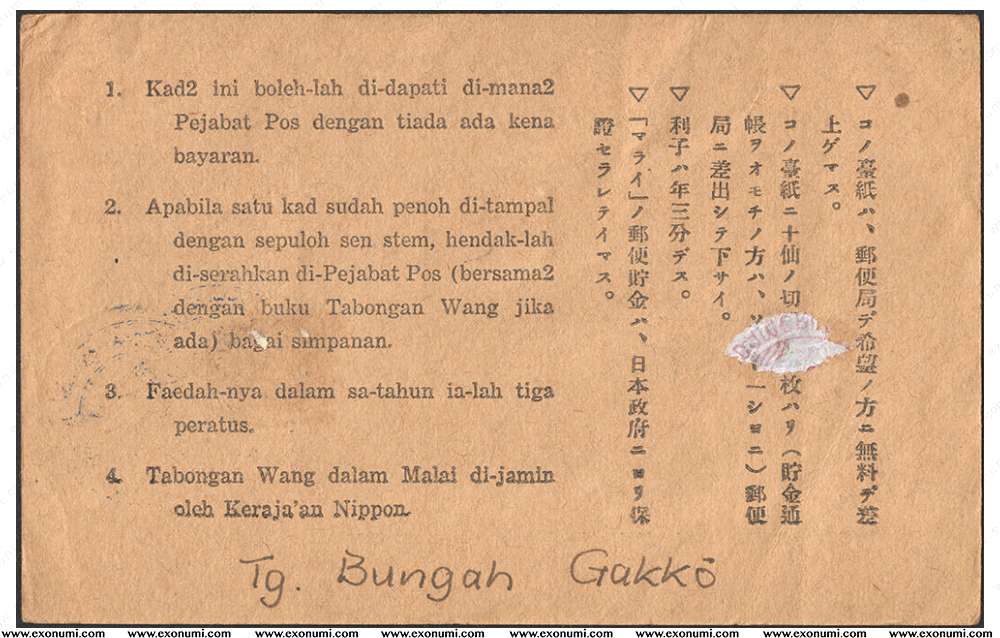Japanese Occupation of Malaya : Postal Savings Card (1944)