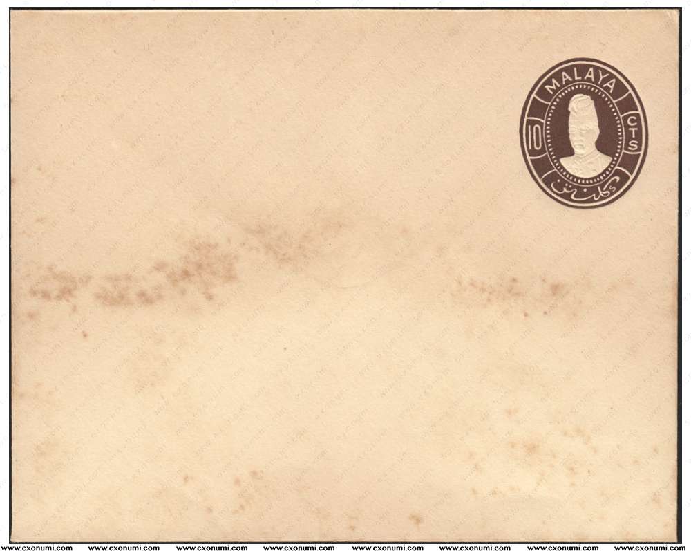 Malaya : Kelantan - Prepaid Envelope 10¢ (1949) Portrait of Sultan Ibrahim