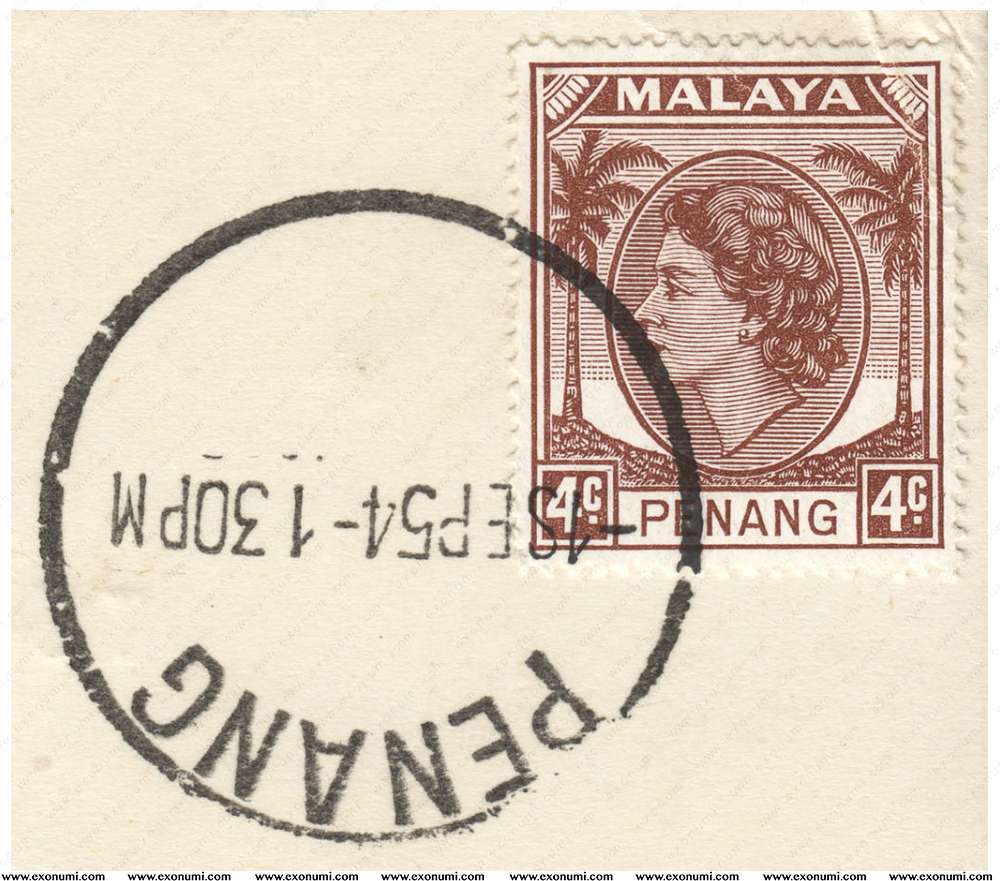 Malaya : Penang - Queen Elizabeth II 4¢ (1954) First Day of Issue on Card