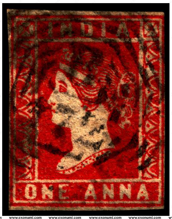 Straits Settlements - 1 Anna Stamp of India used in Singapore B/172 (1854)