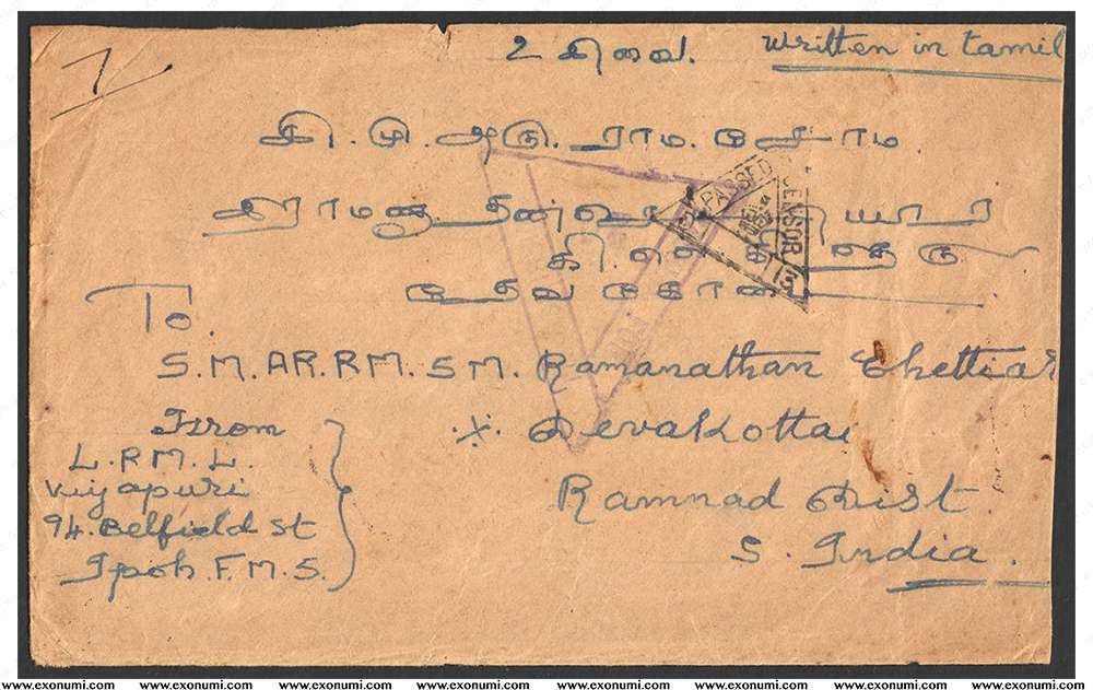 Malaya - Postal Cover from Perak to South India with Malaya Patriotic Fund (1941)