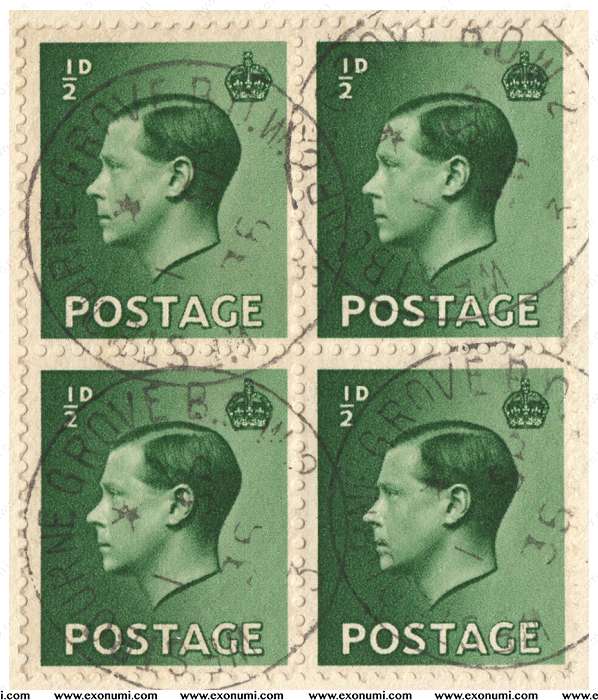 United Kingdom : King Edward VIII - Blocks of 4 Cancelled First Day of Issue 1 Sept 1936