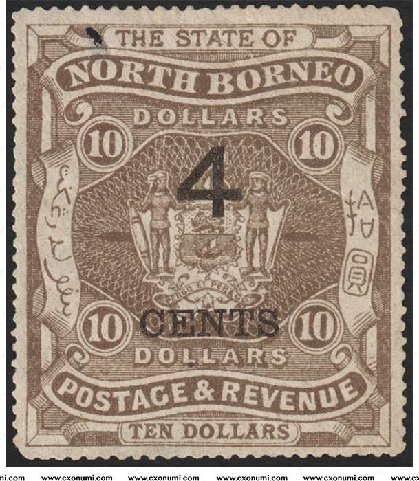 State of North Borneo - Overprinted 4¢ on $10 (1899)