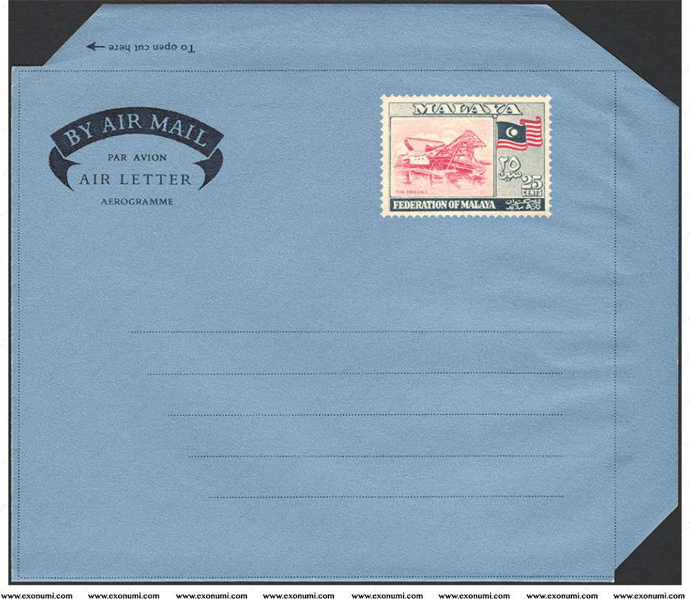 Malaya Federation - Aerogram : Tin Dredge 25¢ (1957) MINT
