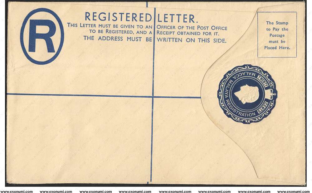 Malaya : Malacca - Queen Elizabeth II 20¢ Registered Envelope Size G (1956) MNH
