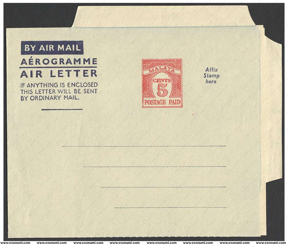 Federation of Malaya - 5¢ Imprinted Postage Paid AÉROGRAMME (1954)