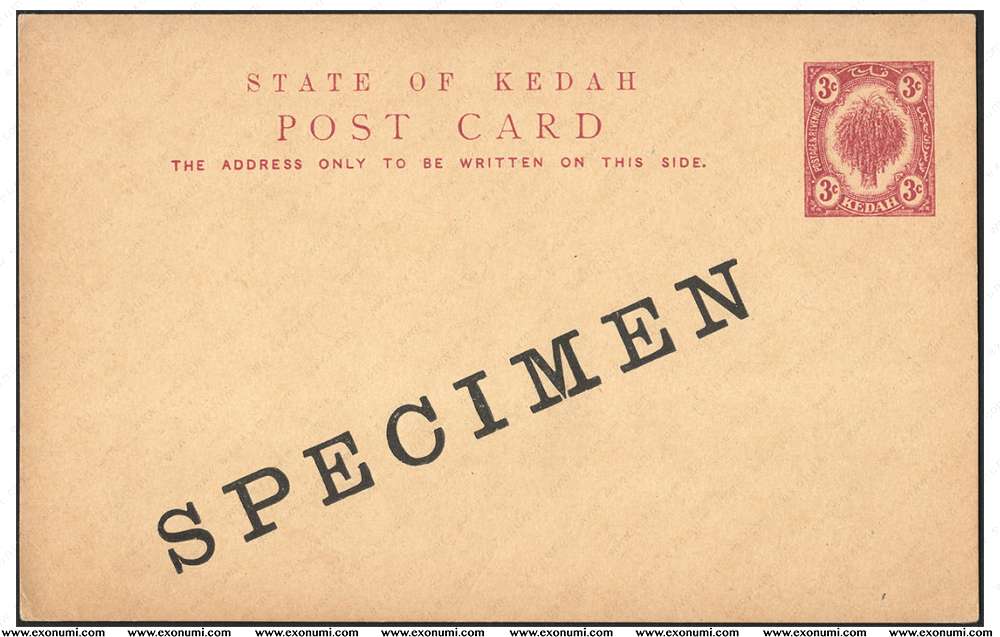 Sultanate of Kedah - Postcard: Sheaf of Rice 3¢ (1912)