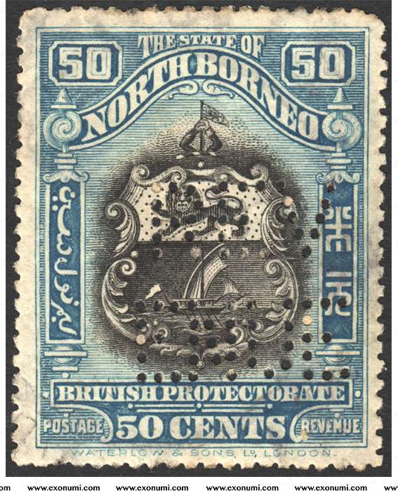 The State of North Borneo - 50¢ Perfin REVENUE (1916)