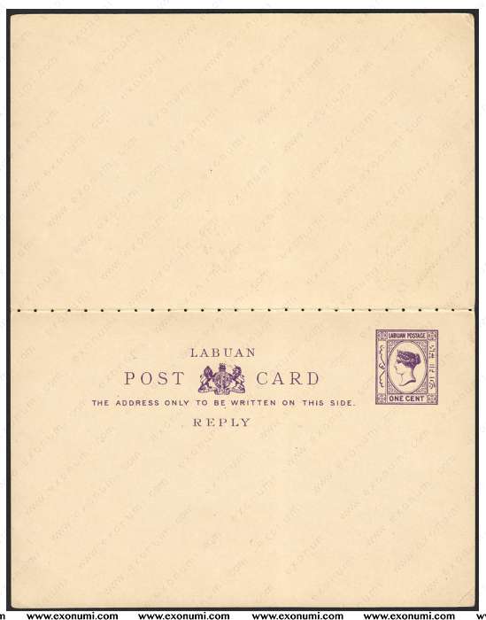 British Colony of Labuan - Postcard 1¢ + 1¢ Reply (1893)