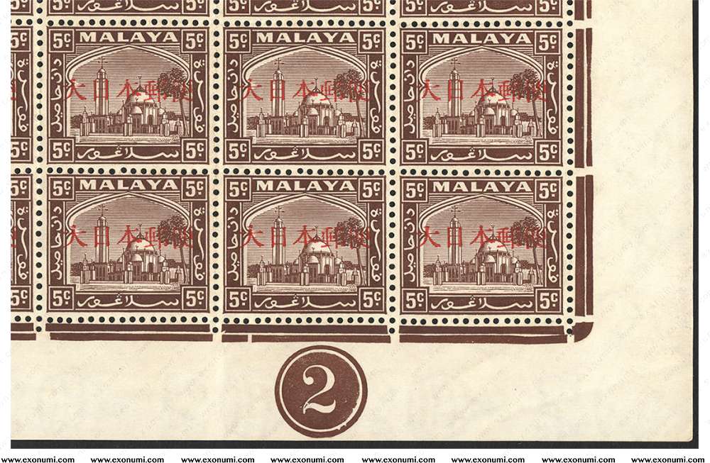 Malaya : Japanese Occupation - Selangor 5¢ overprinted 大日本郵便 : FULL SHEETLET