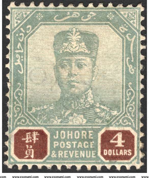 Sultanate of Johore - Sultan Ibrahim $4 : Used for Revenue (1904)