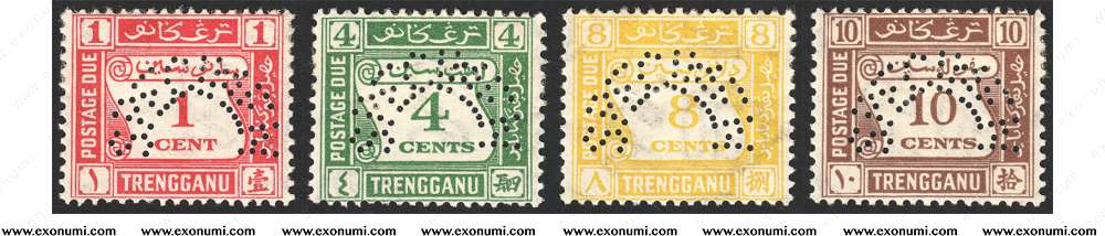 Sultanate of Terengganu - Postage Due with SPECIMEN Perfin (1937)