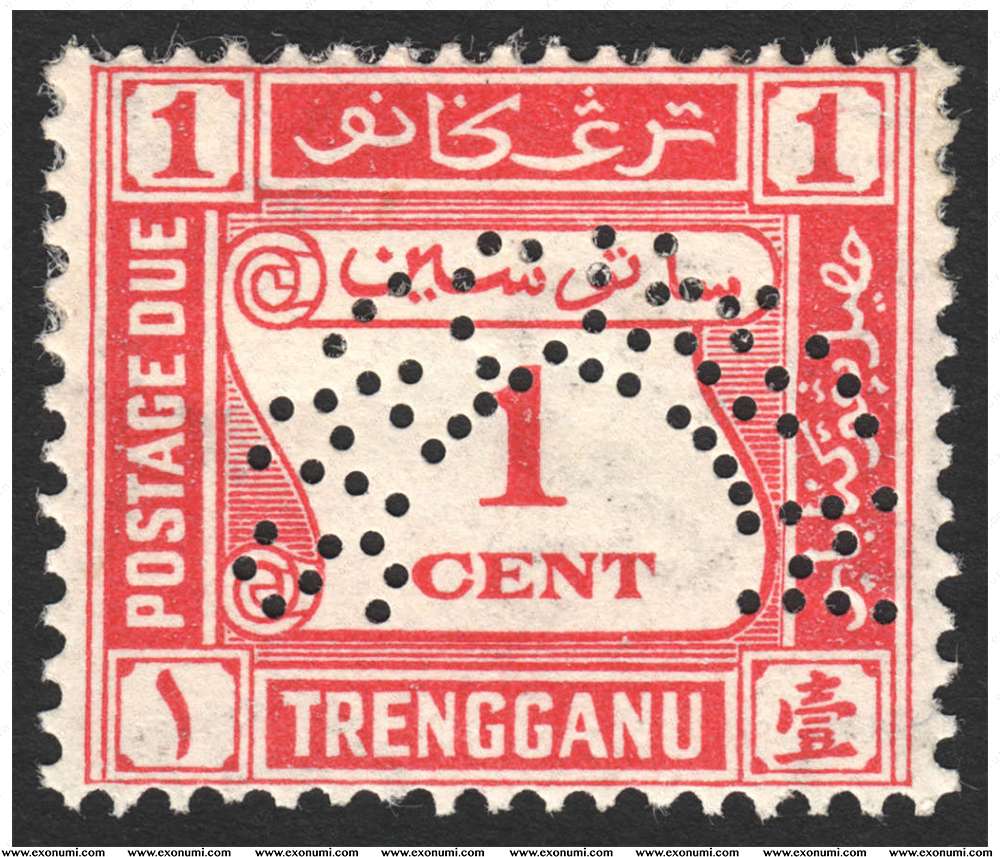 Sultanate of Terengganu - Postage Due with SPECIMEN Perfin (1937)
