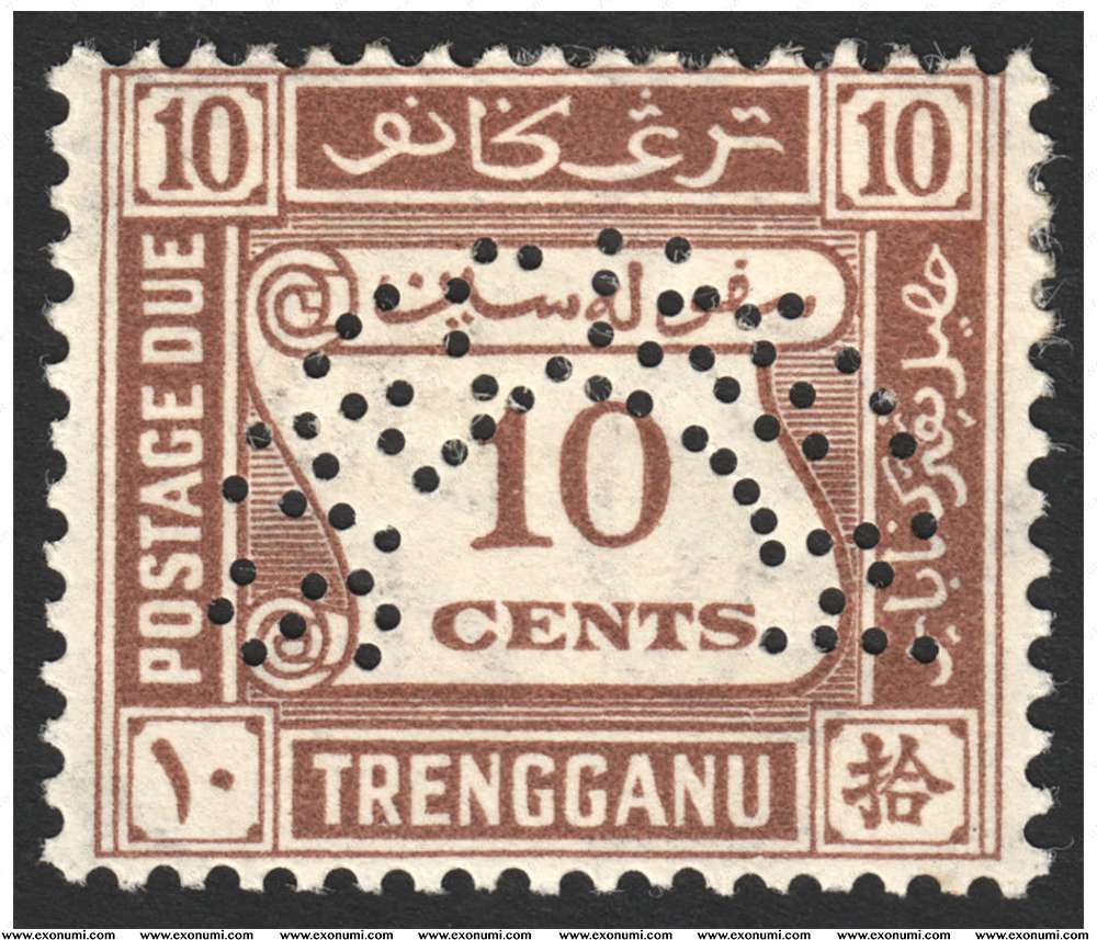 Sultanate of Terengganu - Postage Due with SPECIMEN Perfin (1937)