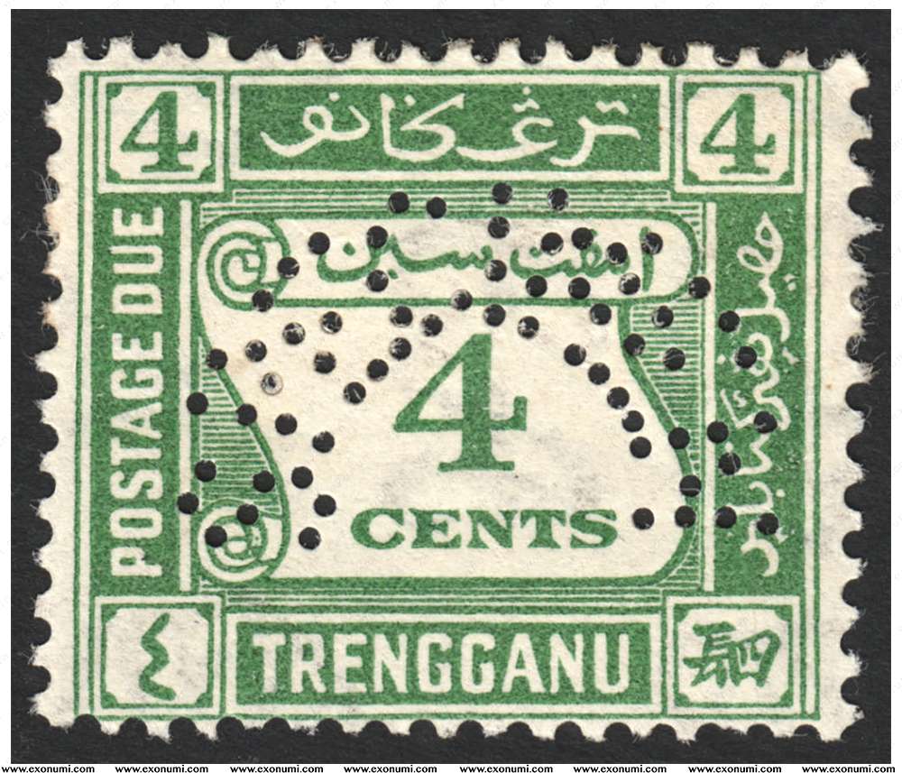 Sultanate of Terengganu - Postage Due with SPECIMEN Perfin (1937)