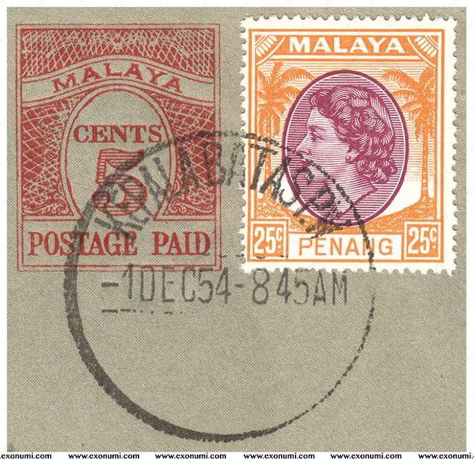 Penang - Aerogram of Federation of Malaya + Uprated Queen Elizabeth II 25¢ (1955)