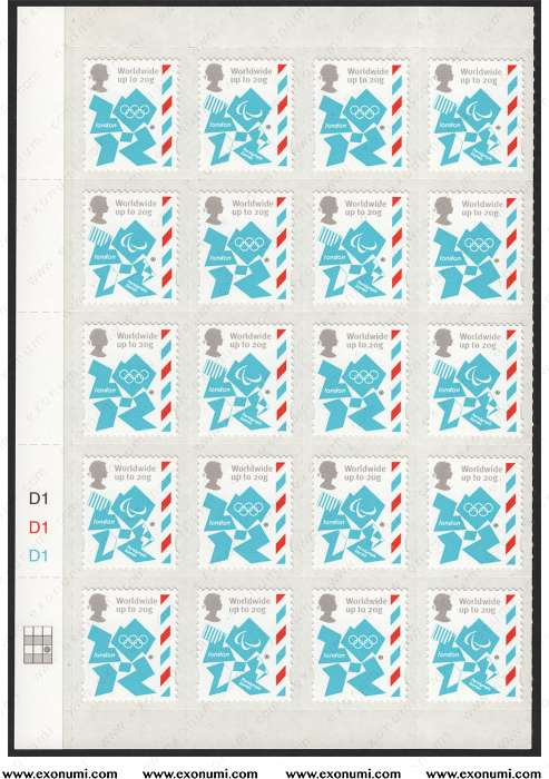 Great Britain - London 2012 Olympics : Worldwide up to 20g Sheet of 20 Stamps [Incomplete]