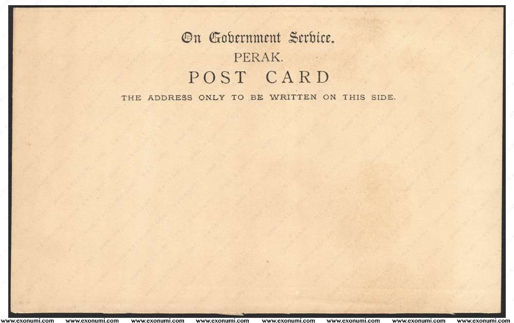 Sultanate of Perak - Official Postcard : On Government Service (1892)