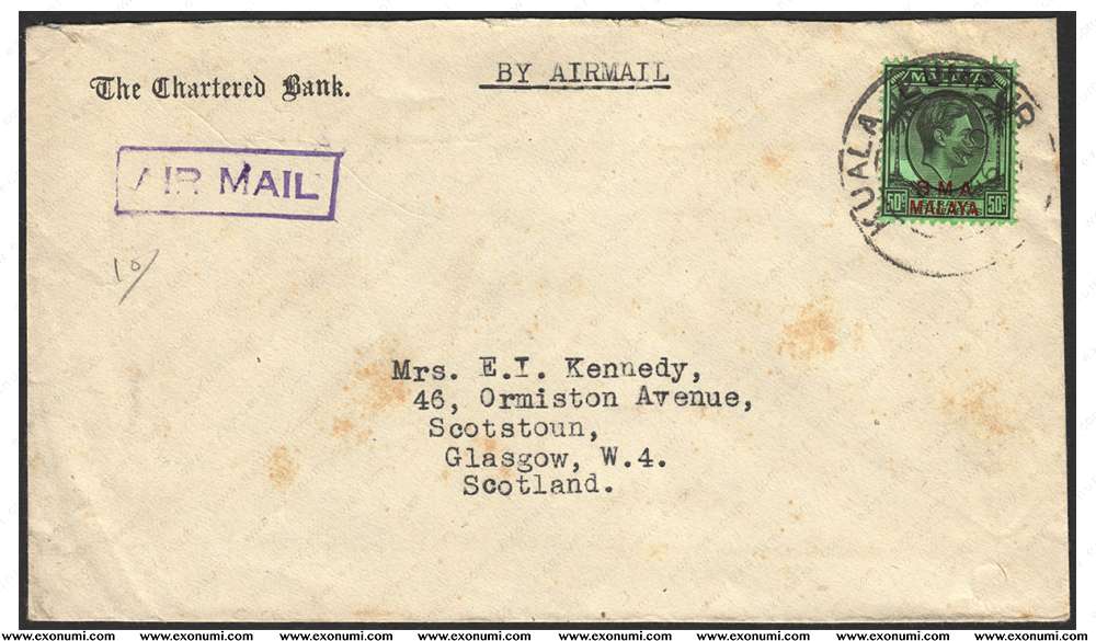 Scotland - Postal Cover from Kuala Lumpur with 50¢ BMA MALAYA + 5¢ Malayan Welfare Fund