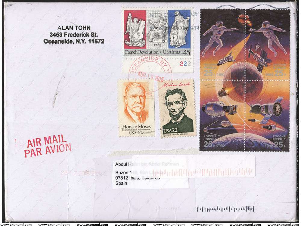 Spain - Postal Cover from USA (2015) with Russian Stamps