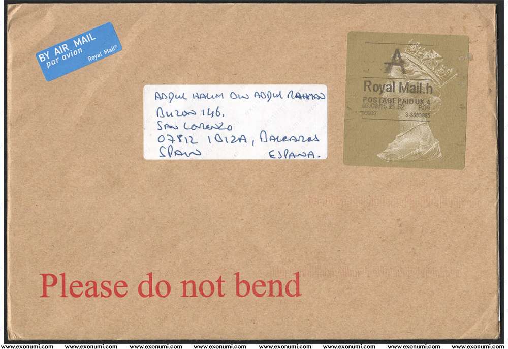 Spain - Postal Cover from Great Britain : Horizon Label 'A' (Airmail) 2015