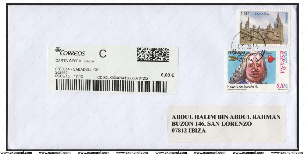 Spain - National Tracking Mail (Carta Certificada Nacional) from Sabadell (2015)