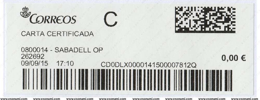 Spain - National Tracking Mail (Carta Certificada Nacional) from Sabadell (2015)