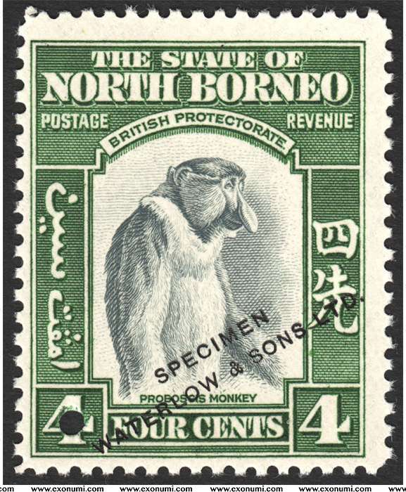 North Borneo - 4¢ Proboscis Monkey overprinted SPECIMEN (1939) MNH