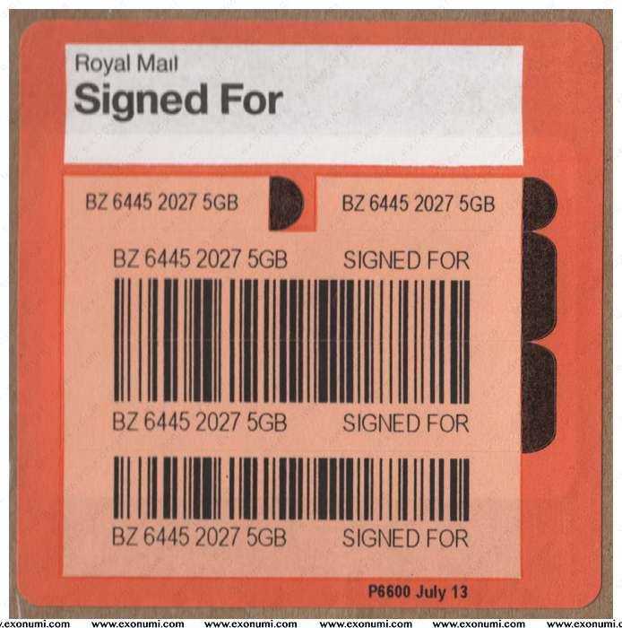 Great Britain - Royal Mail Signed For (P6600 July 13) + 1LG Golden Horizon Label (2015)