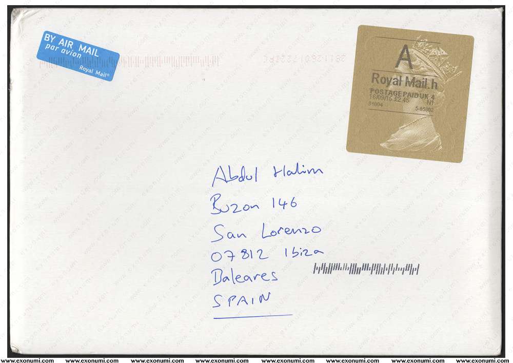 Spain - Postal Cover from Great Britain : Golden Horizon Label 'A' (2015)