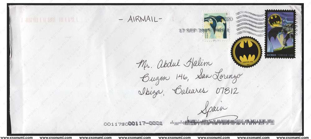 Spain - Postal Cover from USA : Batman Stamps (2015)