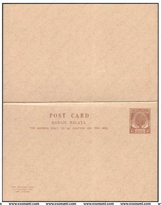 Sultanate of Kedah - 4¢ + 4¢ Reply Sheaf of Rice (1949)