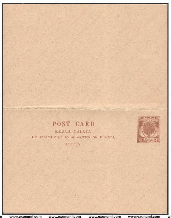 Sultanate of Kedah - 4¢ + 4¢ Reply Sheaf of Rice (1949)